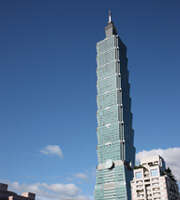Architect Li blends the elements of modernism into the chinoiseries elements of Taipei 101, a fashion-forward shopping mall and skyscraper that boasts the world's fastest static-pressure elevators (which move from the 1st to 89th floor in only 37 seconds at the speed of 1,010 m/min) and the largest wind-damper. At least 370 meters taller than the neighboring buildings, this 508-meter-high skyscraper - with 101 stories above the ground level - commands a breathtaking view of urban landscape. |