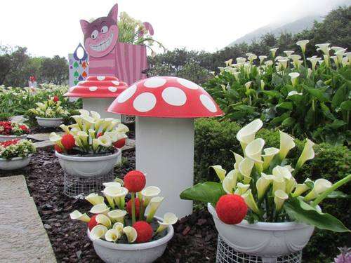 Zhuzihu is being transformed into an eco-destination as well, in addition to being the perfect place for the adults to leave their worries behind, as it already is. This year, the calla Lily gardens will be reinvented into a fairyland for children. There are the Cheshire Cat with his distinct, mischievous grin, smoking his hookah and arrogantly gazing down at the Caterpillar, the Mad Hatter who is forever trapped in the afternoon tea ceremony, and the Queen of Hearts carrying a flamingo as a croquet mallet. These characters from “Alice in Wonderland” add some childhood fun to the white sea of flowers, complementing the limelight of the main attractions.