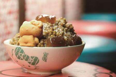 再往里走,藏在最里头的Kitty台味冰菓室提供最传统也最经典的红豆、绿豆、花生及芒果冰等,搭配全套Kitty餐桌椅、餐具,以及附在冰品上一尊Kitty人形烧和Kitty奶冻,不要怀疑,吃冰也能这样耍可爱!