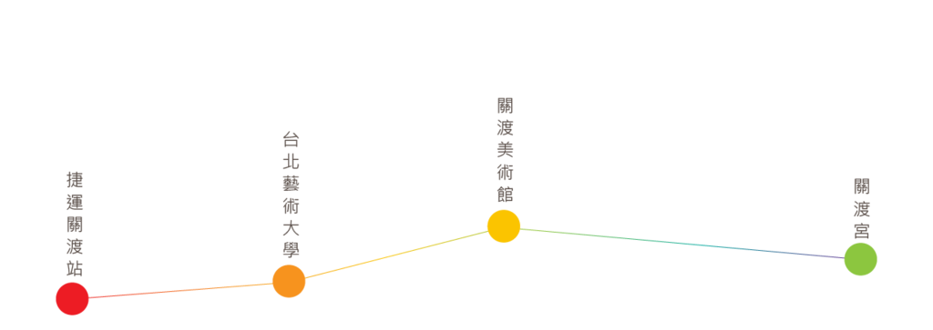 关渡宫是北台湾最老的妈祖庙,至今已有三百五十年以上的历史,建筑本身的石雕、木雕、剪花等艺术典藏,呈现出关渡地区传统艺术的人文气息;附近的北艺大校园内,除了众多的装置艺术外,还有音乐厅、舞蹈厅及戏剧厅,不定期举办演出,而校园内的关渡美术馆,为充满年轻能量的跨界艺术场域,其展览开放作品被研究探讨,宛如一座艺术开放交流会馆。