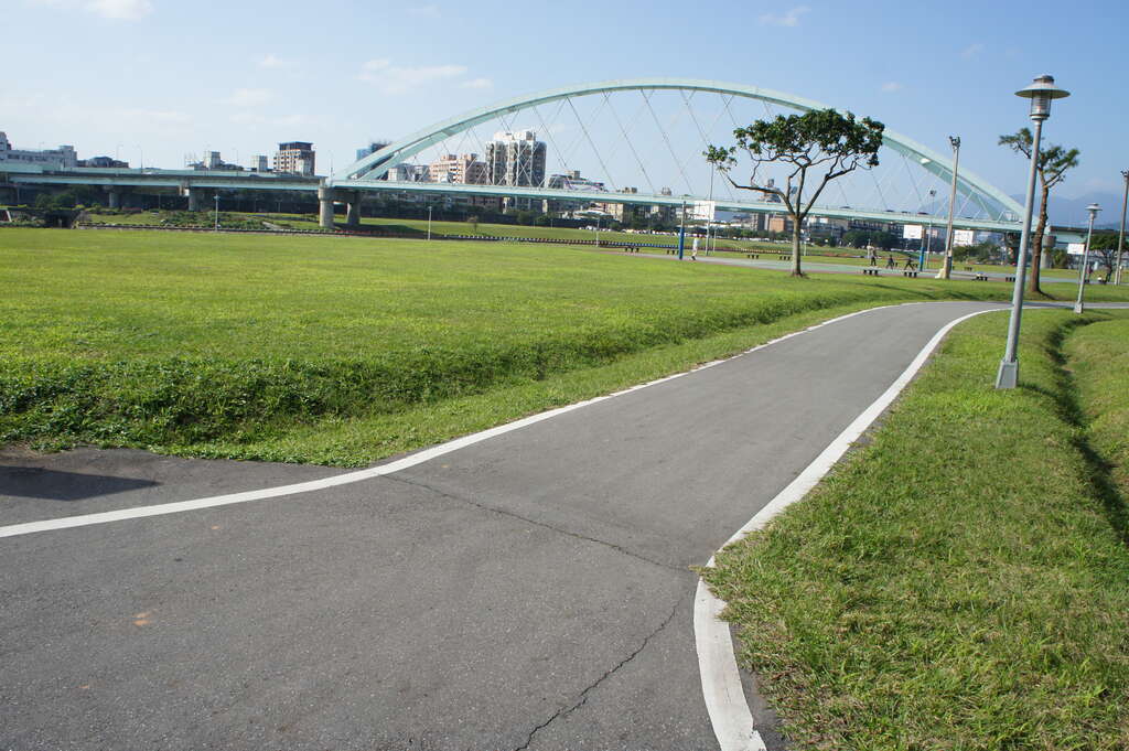 由饶河疏散门-饶河街221巷的慈佑宫後方进入自行车道>彩虹桥>观山河滨公园>迎风河滨公园>大佳河滨公园