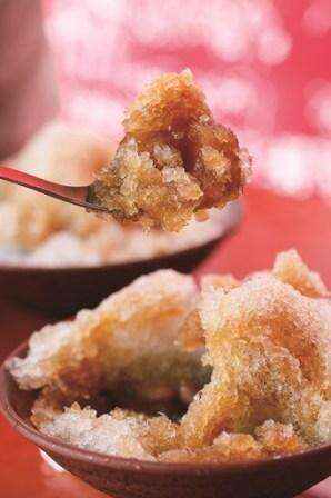 走過一個街口,是同樣人氣破表的建中黑砂糖刨冰,有名的是自製的黑糖粉粿,QQ軟軟香甜入裡,搭配花豆、綠豆、花生、湯圓等配料,盛大熱鬧滿載,幾乎淹沒了底下的冰山,最後淋上熬煮得焦香味濃的黑糖水,香甜濃郁與蜜漬冰料相得益彰,一碗吃完,一路涼呀涼到心窩底。