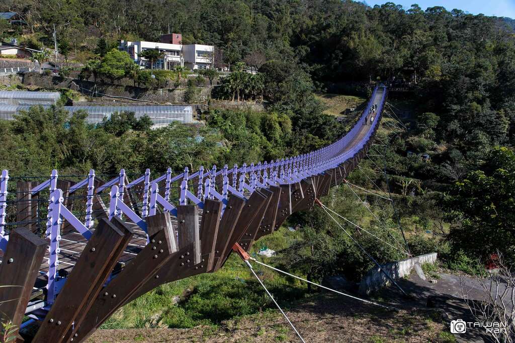 白石湖吊橋造型特別,底盤紮實,為一座無懸吊纜繩的隱形吊橋,也因此與其他吊橋比,走起來相對平穩許多,小孩怕高,但都順利地自己走完全程。