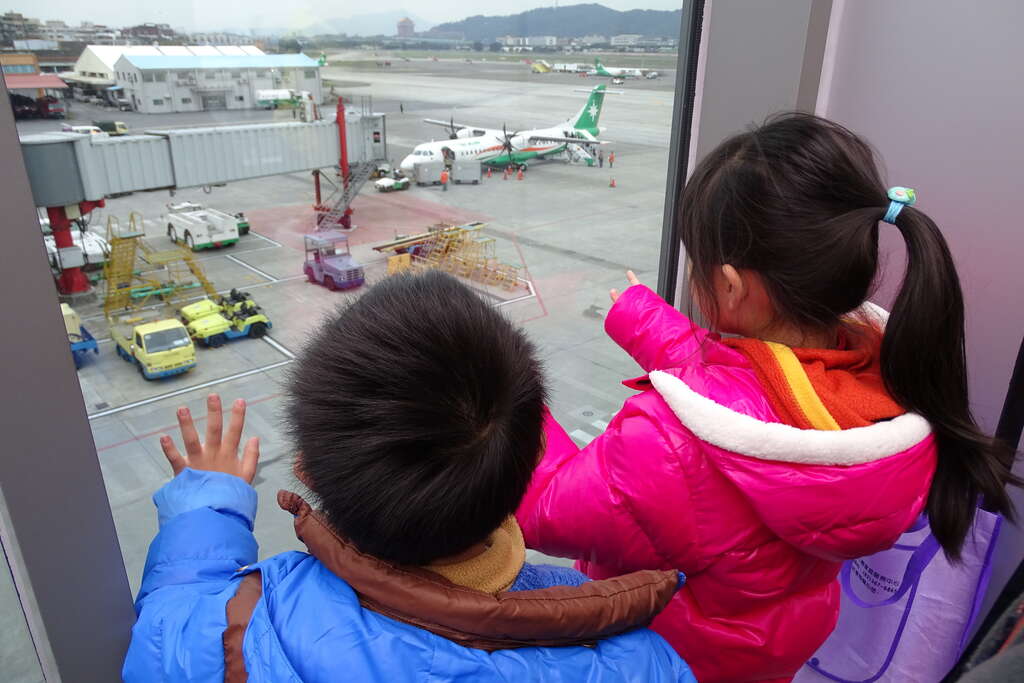 不過,若是回程還有些許體力,可順道去松山機場觀景台看飛機起降。對於已經成年很久的大人來說,飛機也許僅僅只是一種交通工具,見怪不怪。但對小孩來說,卻是個未知的龐然巨物。每當龐然巨物飛上天時,就可聽到一串驚嘆號:「它飛起來了」!!!